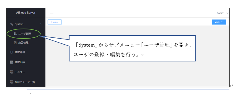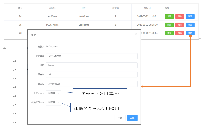 | 管理者ユーザ | 施設登録·編集 装置登録·編集、居室と住所の登録·編集 ユ-ザアカウント登録·編集 |