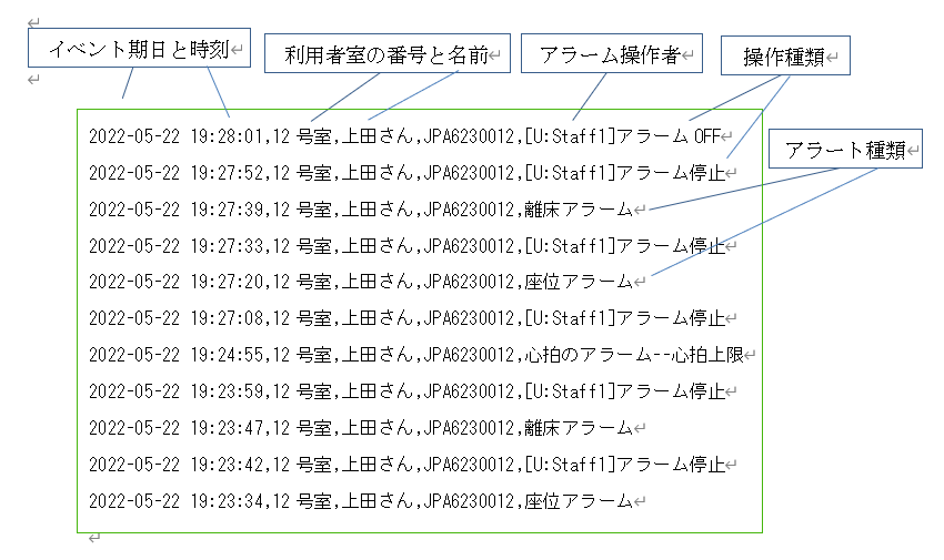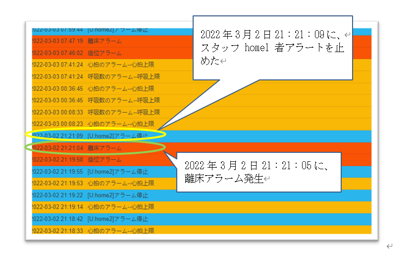 ※ 在床から1分以内の場合、アラームは発報されない。過剰なアラーム頻発を防ぐため。