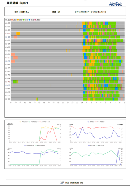 | 総睡眠時間 | 睡眠時間から「覚醒」と「途中離床」を除いたもの |