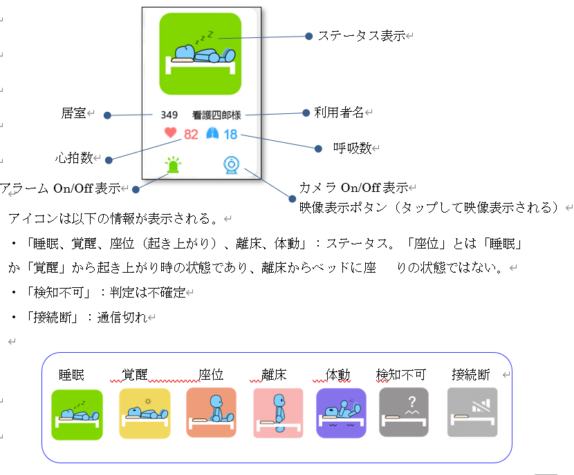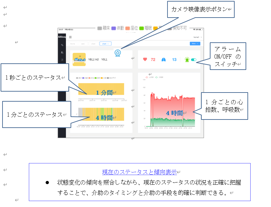※ AiSleepはステータスと心拍数・呼吸数を把握するための補助機器であり、安全を保証するものではない。使用環境などによって、誤検出可能性がある。万一発生した事故などによる損害につき、弊社は一切の責任を負いかねますのでご了承ください。